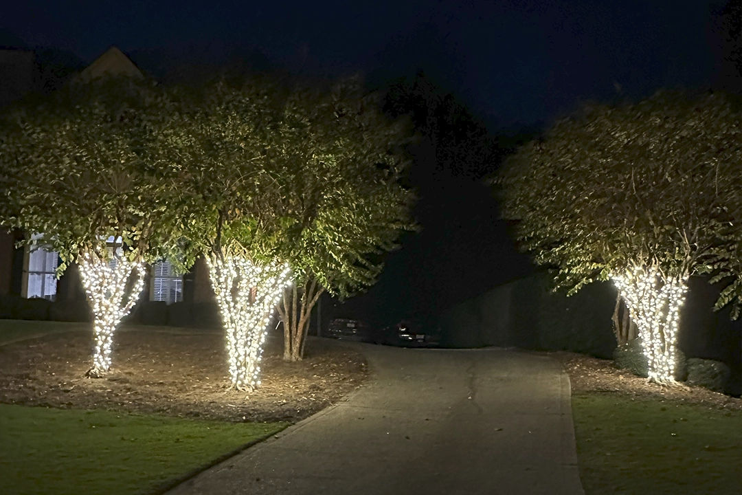 Lights are securely installed using professional methods that protect your greenery.